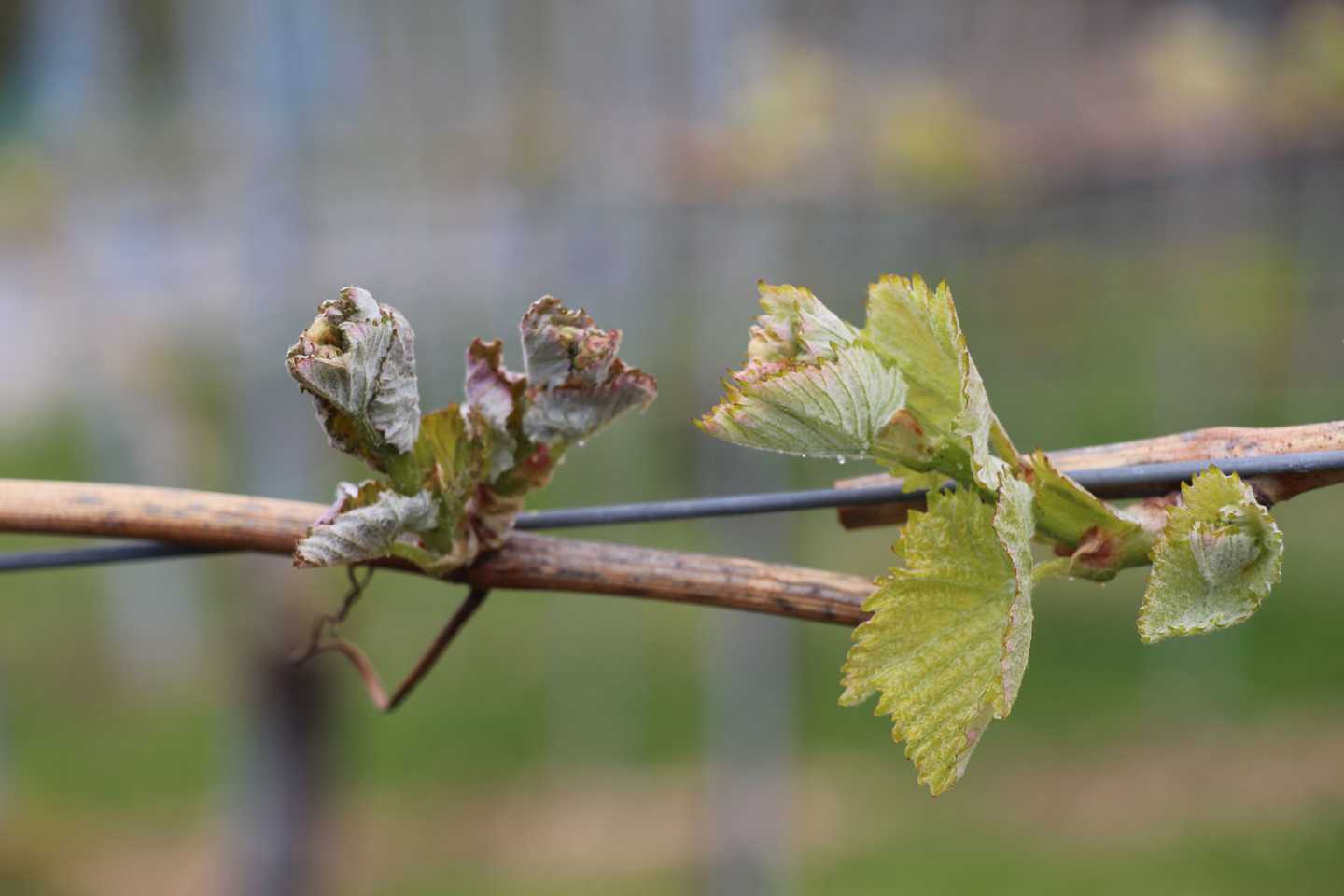Bei uns ist vorallem die empfindliche Sorte Garanoir betroffen. Etwa 20 – 25% der zarten Austriebe sind erfroren und sterben ab. Ob der Frost auch den anderen Reben leicht zusetzte ist noch nicht ganz klar, das wird sich erst nach und nach zeigen.